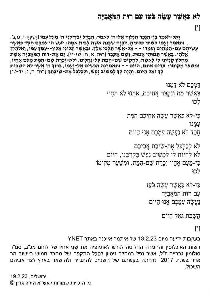 אז למרות כִּי הַשָּׁנָה יום הולדתי יָחוּל בִּמְלֹאת 541 ימים לִזוועות הַשִּׁבְעָה בְּאוקטובּר, ימים ספורים קודם לַיּוֹם הַזֶּה לְפֶתַע שמעתי אותךָ, מֵחָדָשׁ; וּמֵחָדָשׁ שמעתי בְּקוֹלְךָ