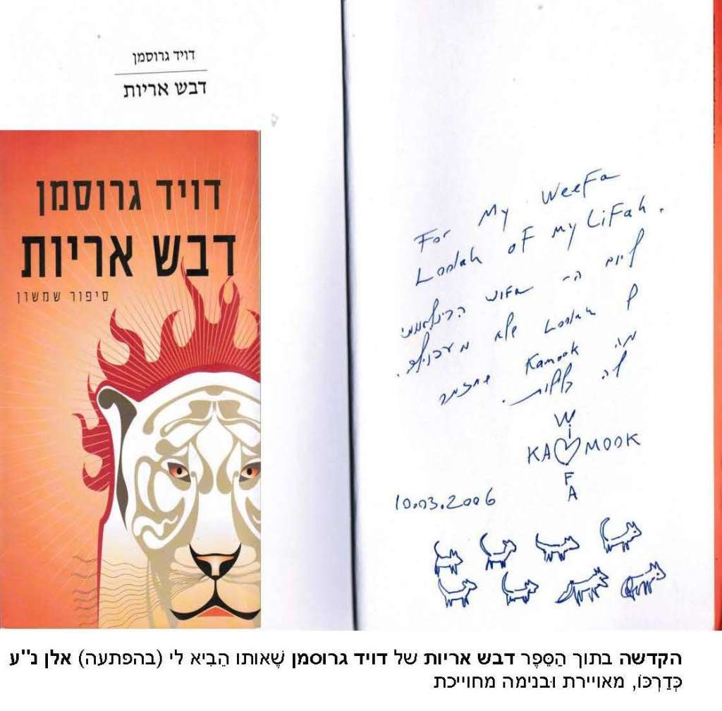 כפי שֶׁחָזַרְתָּ וְשִׁנַּנְתָּ לי בְּחַיֵּינוּ; וְהִנֵּה כעת אתה מבקש שׁוּב ממני לבנות לי נחלה, לְהֵאָחֵז בעולם הַחַיִּים בו נותרתי אַחֲרֶיךָ. לְמַצּוֹת אֶת הַחַיִּים בִּמְלוֹאָם. למצוא אֶת הָאִישׁ שֶׁאיתו עוֹד יהיה טוב, וּלְהַסְכִּים לְהִמָּצֵא לוֹ. לְיַצֵּר רגעים טובים בתוך כֹּל הַמְּרוֹרִים וְהַמַּעֲקָשִׁים וְהָאִיּוּמִים וְהָאֵימוֹת. לְהַסְכִּים לֵהָנוֹת מֵהַטּוֹב שֶׁהַחַיִּים מציעים, על אף כֹּל הזוועות שֶׁאֵרְעוּ וְכֹל הדברים הנוראים שֶׁממשיכים לְהִתְרָחֵשׁ בְּאֵין מוֹשִׁיעַ וּלְהַקְשִׁיב לַמְּסָרִים שֶׁאתה עֲדַיִן שׁוֹלֵחַ, בְּיַד תִּשְׁלָח וּמוסיף סימנים מוּסְכָּמִים שֶׁאַכִּיר; כמו קפה דוידוף שֶׁחָזַרְתָּ וְהֶרְאֵיתָ לְ-ר’ שלנו סמוך לִפְנֵי בִּקּוּרִי הָאחרון אֶצְלָהּ, וְהִנֵּה לְפֶתַע היא אומרת