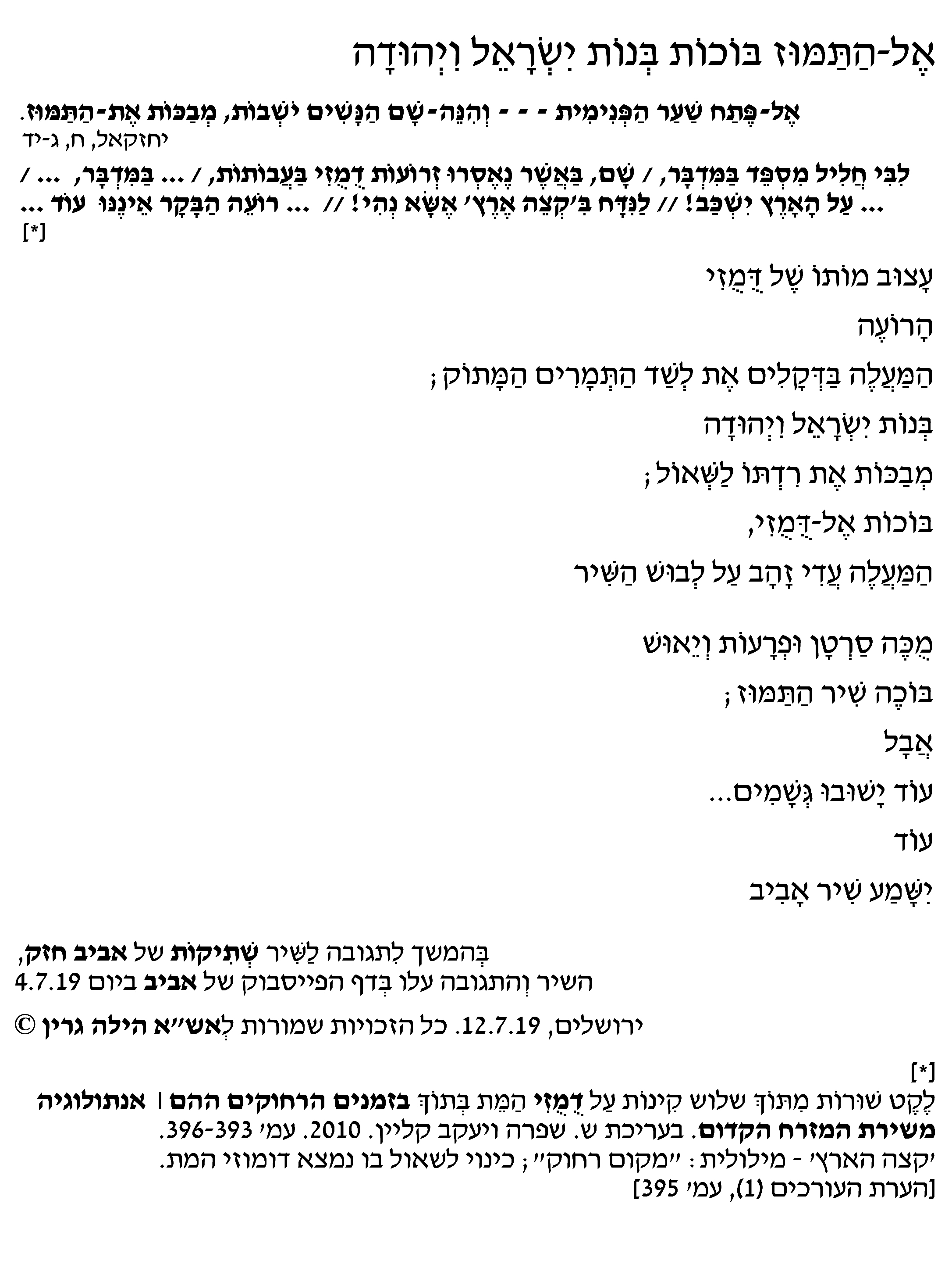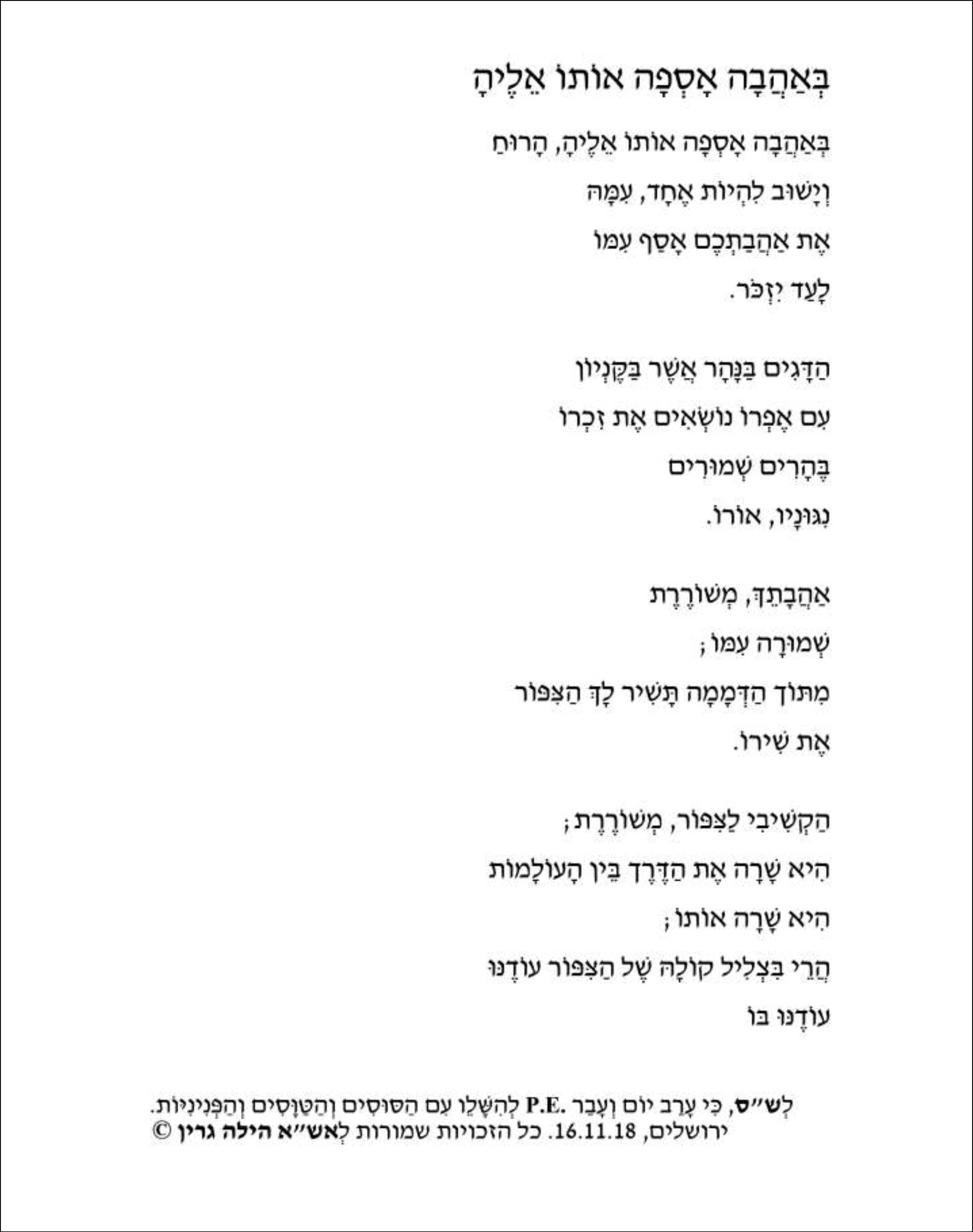 וְסִפֵּק לא היה בְּיָדִי לְהַעֲלוֹת בְּדף הָפייסבּוּק אשר כּבר נפתח פֹּה עַל-שְׁמִי, אַחֲרֵי שֶׁהוּרַד לְטִמְיוֹן הַדף שלךָ אֵלָיו נכנסתי לִסְפֹּד לְךָ וְלִבְכֹּתְךָ אַחֲרֵי שֶׁנֶּעֱקַרְתָּ מִתּוֹךְ סְגוֹר-לִבִּי, שֹׁרֶש נִשְׁמָתִי שֶׁבְּעוֹלָם הָאוֹר – קישור לַשיר הַזֶּה של הַכּוֹתֵב שֶׁשְּׁמוֹ כְּשִׁמְךָ אשר שָׁר לי כְּמוֹ מִמְּךָ