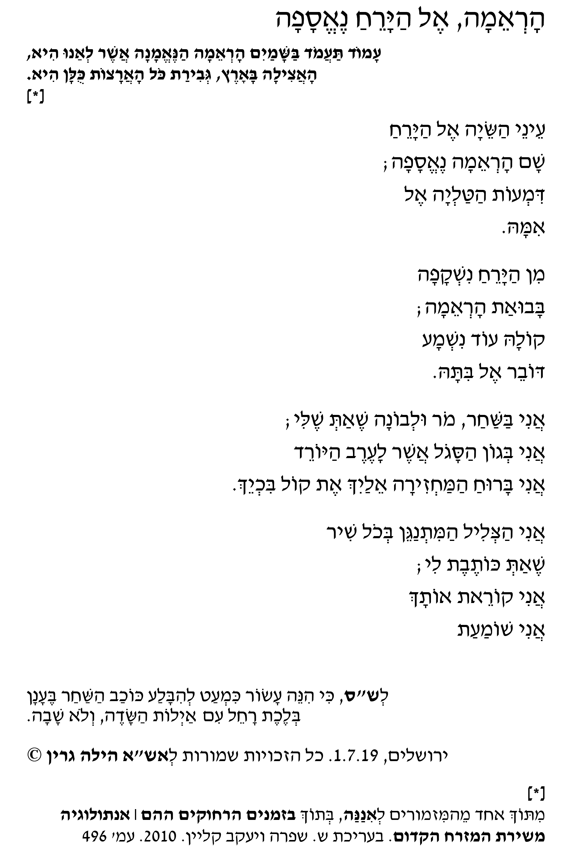 זעקות הכאב של היקרה לךָ מִכֹּל מְזוּנָבֵינוּ, אֲהוּב-לִבִּי היקר לי מִכֹּל